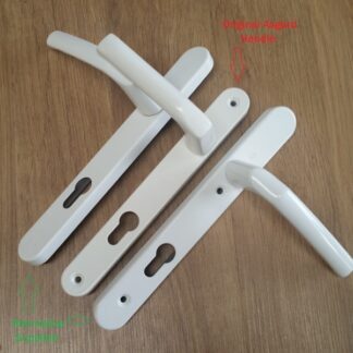 92mm & 70mm Lever/Pad Mila. 200mm Screw hole centres.THIS HANDLESET IS DESIGNED SPECIFICALLY TO SUIT THE MILA TWIN SPINDLE DOORLOCK RANGE, They are no longer available , the only alternative is the 165mm screw hole centre handles designed for the same lock , as per picture we will supply 2 x 13mm plugs to cover up the original exposed top screw holes