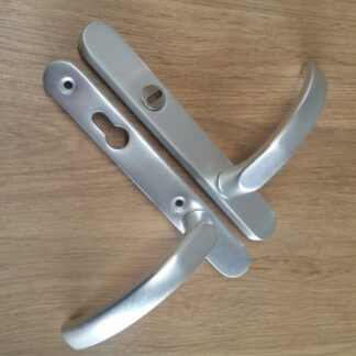 92mm & 70mm Lever/Pad Mila. 200mm Screw hole centres.THIS HANDLESET IS DESIGNED SPECIFICALLY TO SUIT THE MILA TWIN SPINDLE DOORLOCK RANGE, They are no longer available , the only alternative is the 165mm screw hole centre handles designed for the same lock , as per picture we will supply 2 x 13mm plugs to cover up the original exposed top screw holes