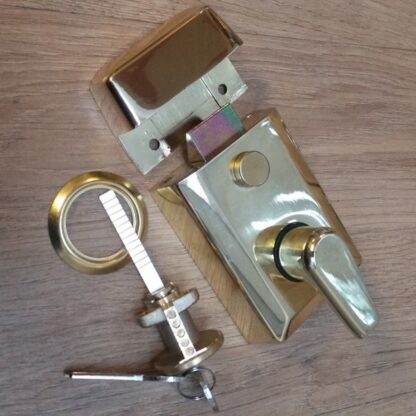 Brass 60mm deadlocking nightlatch c/w rim cylinder